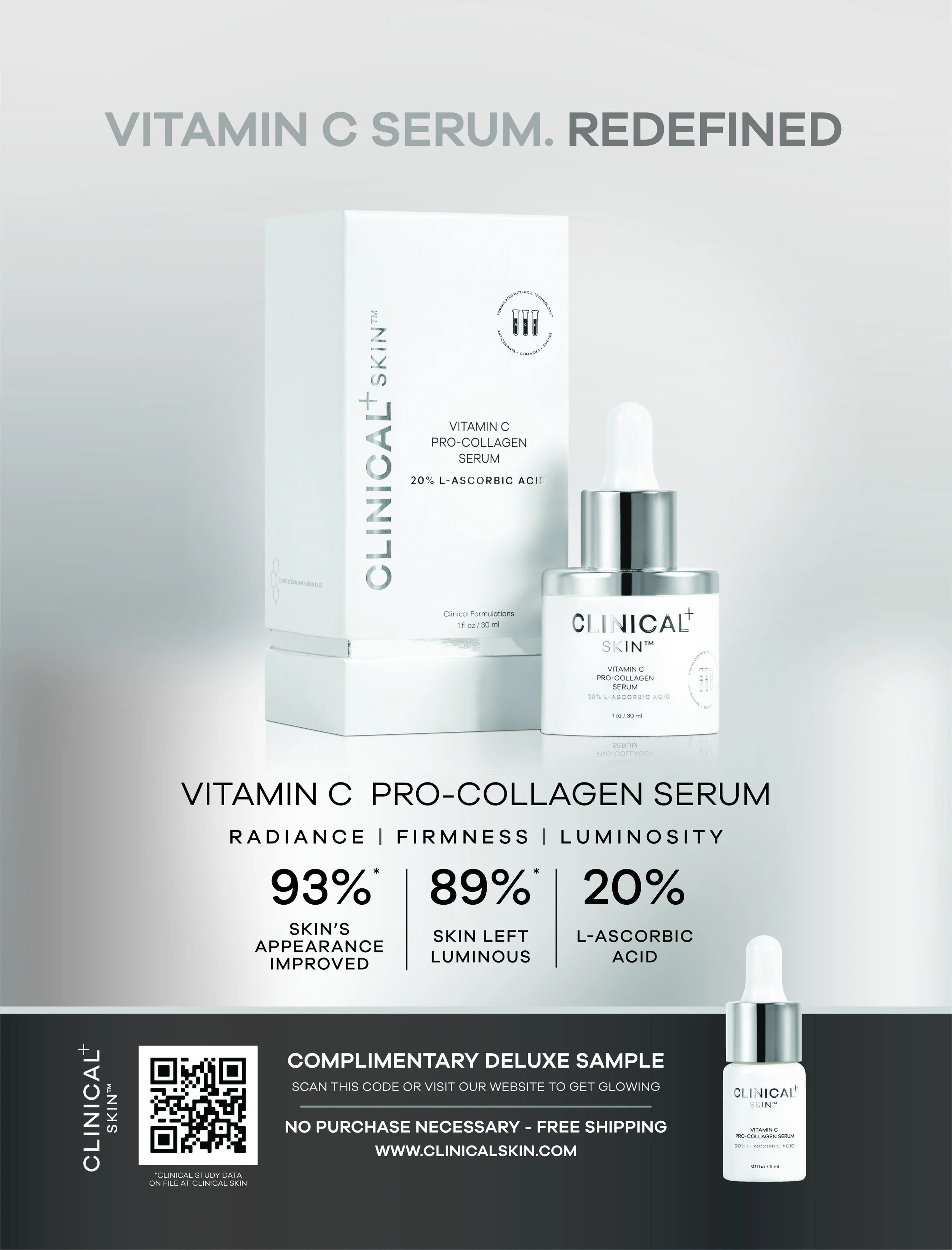 I was tasked to design a full page magazine ad for Clinical Skin, a luxury skincare brand.