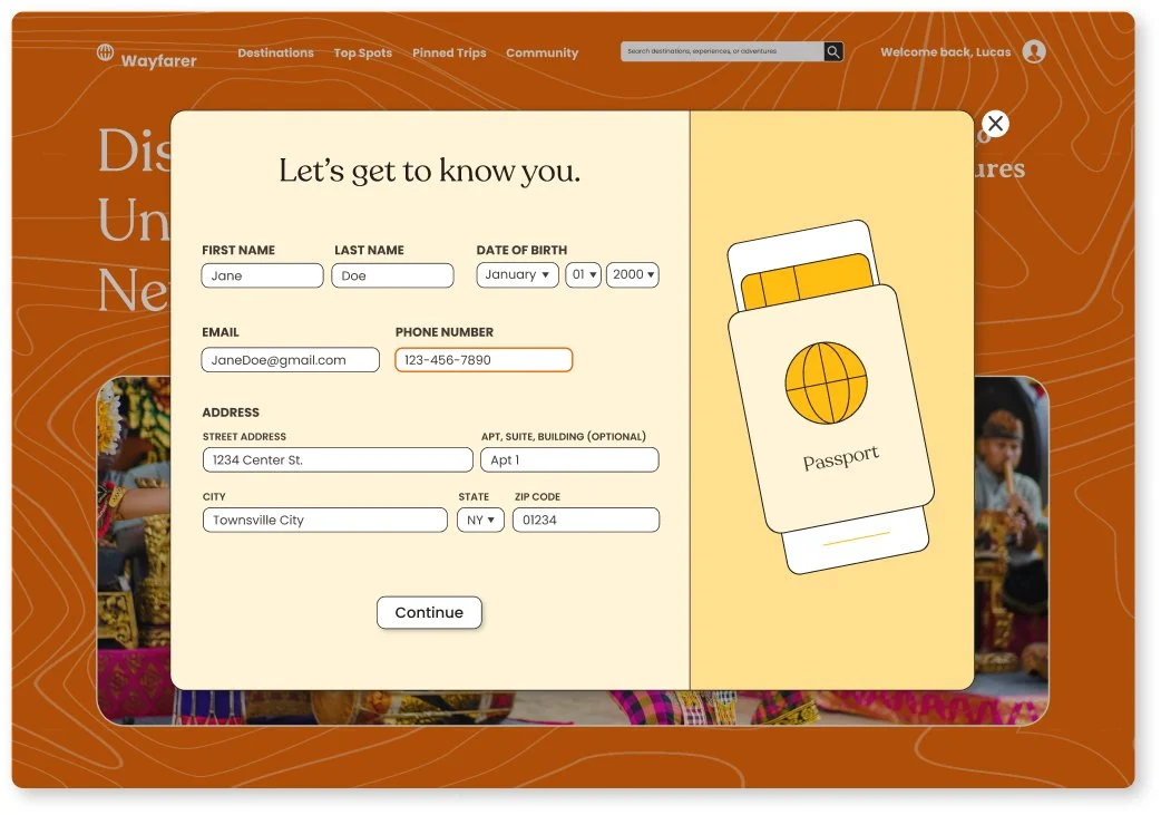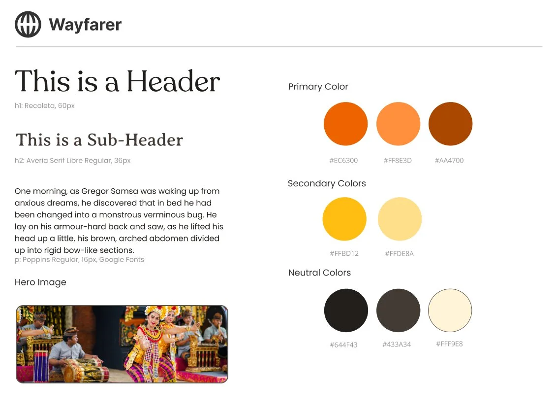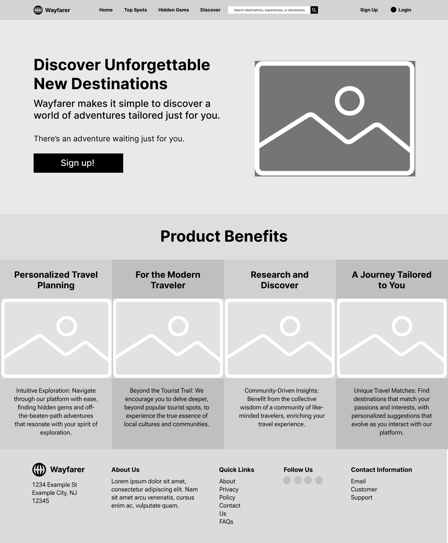 Wayfarer is a mock travel website that encourages travelers to explore destinations that are off the beaten path. I was tasked to create the full brand identity and design website UI components and graphics in Figma. The goal was to design a landing page that appealed to Gen Z consumers. Upon researching new trends in design and social media, I found that bold colors and whimsical shapes were popular. I looked through travel websites through a Gen Z lens, and figured that the minimalist approach looked too serious and outdated. Traveling is fun, and that is what I wanted to communicate through my design.